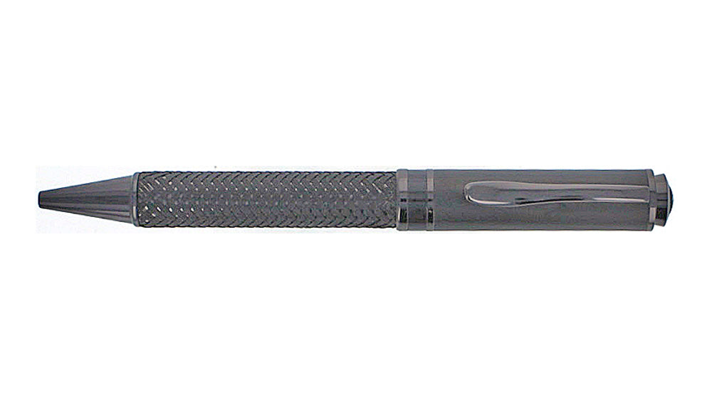 The Monteverde Innova™ Formula M is inspired by the racing industry, the Monteverde Innova Formula M collection evokes the power, speed and elegance of competition. All pens in the collection feature a 304 wire-braided stainless steel sleeve with PVD coating over a brass barrel. Wire braiding is often fitted on high-performance cars as it offers the best possible protection against mechanical damage. The braided mesh is made by winding wire around a core on spools that are rapidly rotated in a circular pattern, weaving the wire together and molding it into a flexible and robust braid. 304 wire-braided mesh’s advantage lays in its incredible durability and resistance against UV rays, abrasion, and chemical corrosion, making it virtually indestructible. Each writing instrument is fully-covered with matte PVD coating, providing key performance features while giving additional vibrancy, luster, and durability. PVD (Physical Vapor Deposition) is a process that uses diverse thin film deposition techniques that focus on vaporizing a solid material in a vacuum environment, resulting in deposition onto the surface as a pure material coating. This material coating is appealing to the eye but also extremely durable, can reduce friction and serve as a barrier against any potential damage caused by the external environment and usage of the product. Moreover, PVD coating is highly resistant to tarnishing and corrosion, which makes it perfectly suitable for decorative finishes with colors that do not fade. Each pen features cap and a front sections made from sold brass and coated with matte PVD. A unique and attractive CARBON FIBER RING offsets the gunmetal appointments and completes the racy design