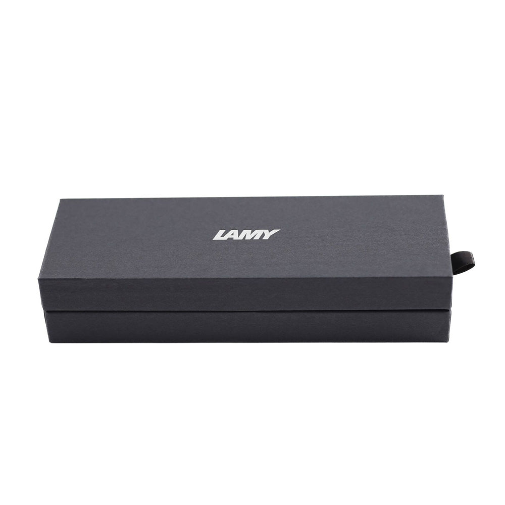 The slightly curved, slim shape of its all-metal body seamlessly emerges from the individual case parts and is deliberately minimalist. The gentle curvature and harmonious proportions make the clip the trademark of the LAMY studio. Bright chrome grip and propeller-shaped clip give the Studio an eye-catching design. Uses the Lamy T10 ink cartridge (1 included with pen) or the Lamy Z27 converter for bottled ink (also included). Additional Lamy T10 ink cartridges and Lamy Z27 converters are available in our store under Lamy Refills. Studio is 5-1/2" capped and approximately 6" with the cap posted for writing. Gift boxed. Made in Germany.